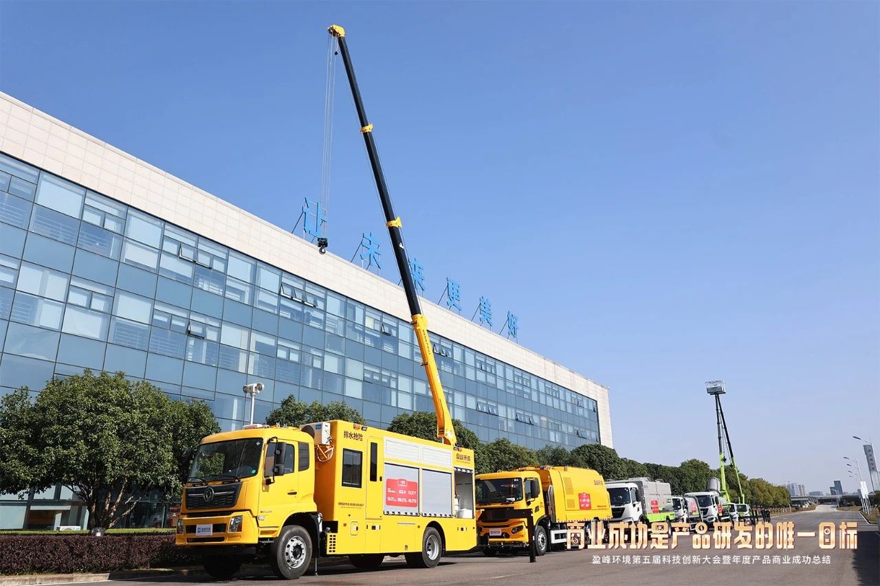 铁甲列阵待阅,旌旗“盈峰”飞舞。在前坪广场上,公司设置了科技成果展区,18吨大流量排水抢险车、18吨高速扫路车、18吨干洗两用纯电动洗扫车、18吨纯电动抑尘车、12吨9方压缩式垃圾车、4吨28米高空作业车在凌冽的寒风之中庄严列队,迎接研发功臣,见证科技盛会。从新能源装备“国内首台”的开拓到“第 9000 台”的引领,bv1946伟德将科技创新的“基因”融入时代发展的“血脉”,向“新”而行, 以“质”致远。