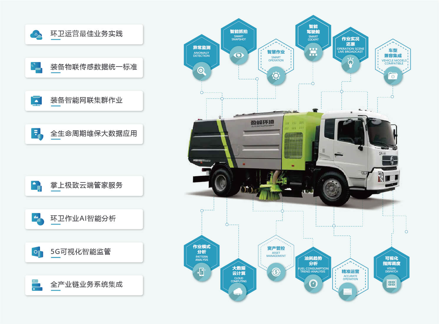 基于互联网、物联网、人工智能、大数据、云计算等技术,公司自主开发国内领先的环卫全产业链智慧环卫云平台,该平台拥有58余项智慧环卫相关的软件著作权及专利,汇集全球智慧融合“大云物移智”技术,实时互联城市服务中的人、车、物、事,形成全域服务治理模式,并以“数智化”赋能城市面貌出新出彩。目前平台已在全国254个城市落地环卫数字化运营项目,为全国超10万台产品的客户提供智能服务,为智慧城市建设实现高效的生产空间、宜居的生活空间、和谐的生态空间赋能助力。